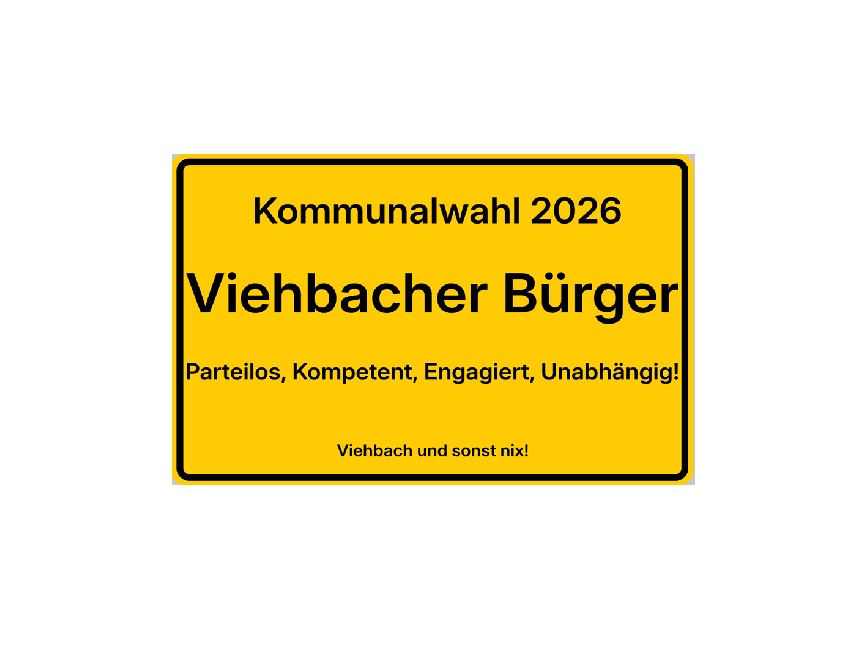 Die Unabhängige, Parteilose Wählerliste "Viehbacher Bürger" starten mit dem Verteilen ihrer Info Flyer für die Gemeinderatswahl am 8. März. Sollte ein Haushalt bis zum 13.02 keinen Flyer bekommen haben, bitte bei Stephan Fuchs melden.