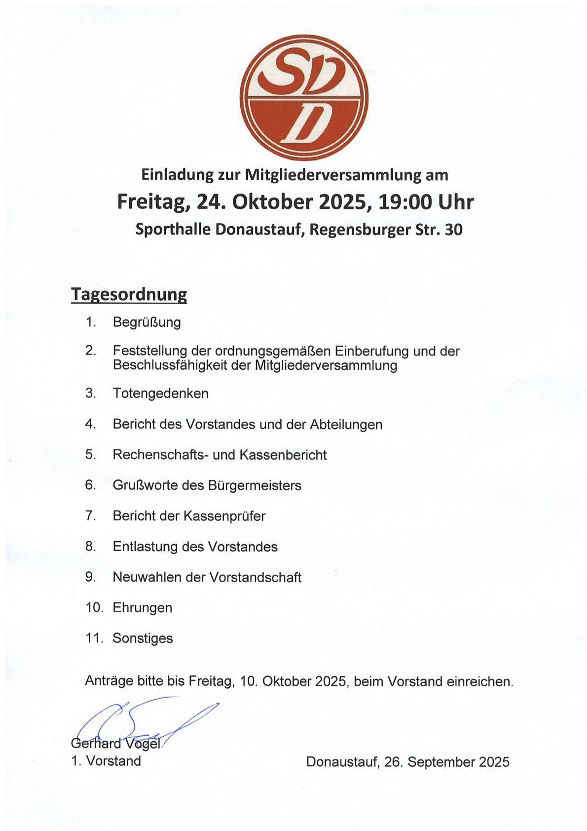 Mitgliederversammlung des SVD in der Sporthalle Donaustauf an der Regensburgerstraße