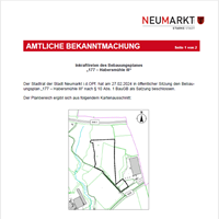 Der Stadtrat der Stadt Neumarkt i.d.OPf. hat am 27.02.2024 in öffentlicher Sitzung den Bebau-ungsplan „177 – Habersmühle III“ nach § 10 Abs. 1 BauGB als Satzung beschlossen.Hier erhalten Sie die amtlichen Bekanntmachungen der großen Kreisstadt Neumarkt i.d.OPf.
