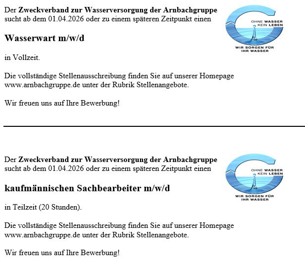 📢 Stellenanzeige – Zweckverband Arnbachgruppe